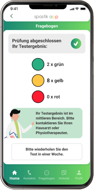 Use the Spasticity App questionnaire once a week to obtain a test result based on the traffic light principle.